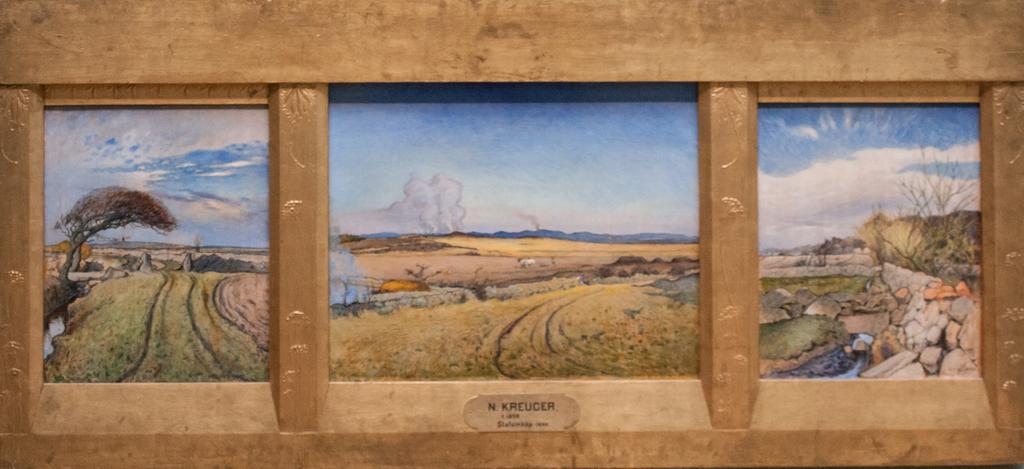 | Keywords: Kreuger - Spring in Halland.jpg Artwork Creator Nils Kreuger langswitch Three paintings in a Frame Sculpted by the Artist Tre landskap i en ram skulpterad av konstnären Három tájkép egy a művész által készített keretben 1894 Oil on canvas Institution Nationalmuseum Stockholm object history provenanceEvent purchase 1895 Nationalmuseum Stockholm credit line accession number 1483 own photo Szilas Nationalmuseum Stockholm Nils Kreuger Swedish paintings in the Nationalmuseum Stockholm PD-old-100 |