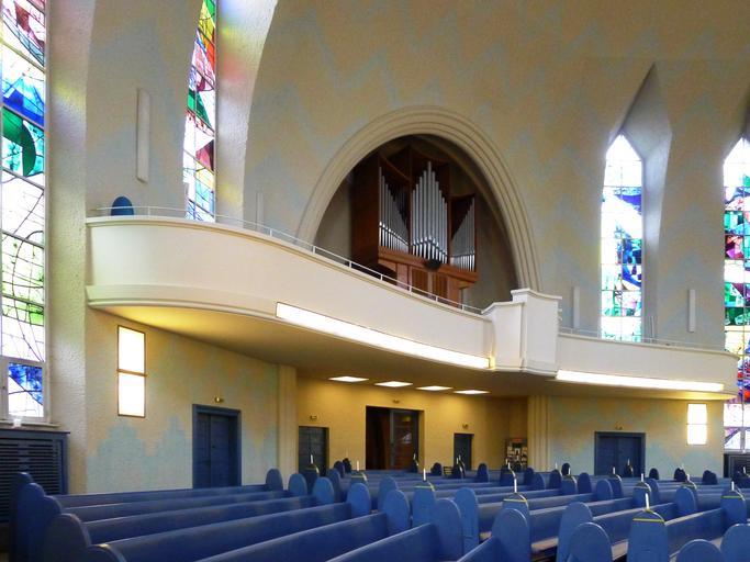 Keywords: Kreuzkirche (Berlin) Orgelempore.JPG de Orgelempore über dem Eingangsbereich zum Kirchenschiff own Bodo Kubrak 2013-06-02 Kreuzkirche Berlin-Schmargendorf Pipe organs in Berlin Kreuzkirche Schmargendorf Cc-zero
