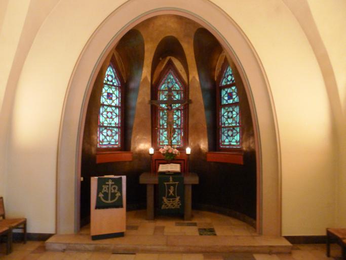 Keywords: Kreuzkirche (Berlin) Werktagskapelle.JPG de Werktagskapelle im Vorraum im Turm own Bodo Kubrak 2013-06-02 Kreuzkirche Berlin-Schmargendorf Cc-zero