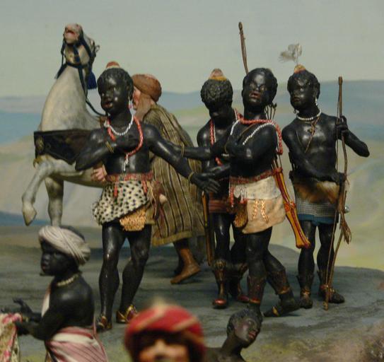 Keywords: Krippe 91 Mohrengruppe BNM.jpg Mohrengruppe aus einer Anbetung der Könige wohl von Ludwig München um 1800; Krippensammlung des Bayerischen Nationalmuseums München; Zyklus Münchner Krippen Bild 6 own own photograph 2009-01 Photo Andreas Praefcke Own work all rights released Public domain Krippensammlung des Bayerischen Nationalmuseums Africans in 19th-century art Nativity scenes of Bavaria Male fur clothing in art Photos by User AndreasPraefcke Statues of people of Africa Black Africans in art 19th-century nativity scenes Balthazar dark-skinned Wise Man |