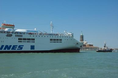 Keywords: Kriti-II-Venice-20050525-005.jpg 45 432551299988 12 349705700124 0 en Tug boat Emilio Panfido towing ferry Kriti II at Venice with San Giorgio Maggiore in the background 2005-05-25 own Gary Houston cc-zero Uploaded with UploadWizard Emilio Panfido tugboat 1969 Kriti II ship 1979 Tugboats in Venice |