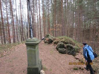 Keywords: Kříž na vrcholu mařenické Kalvárie.JPG cs Na vrcholu kopce Kalvárie v Mařenicích je kříž a několik postav vyrytých do kamenů 2016-03-23 11 40 48 own Zákupák other versions cc-zero Kalvárie Mařenice