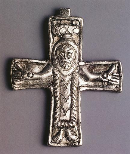 Keywords: Kříž z Mikulčic.png cs Stříbrný závěsný křížek zobrazuje v reliéfu postavu Ukřižovaného oděného v dlouhé tunice s širokým lemováním Nad hlavou Krista je štítek snad s písmeny CCXO které mohou být nepochopenou původní symbolikou slunce a měsíce Maskovité zdůraznění hlavy s expresivním výrazem tváře je spojováno s iroskotským uměním oděv Krista a celkové pojetí křížku je naopak považováno za doklad východního nejspíše syrského původu Nelze vyloučit ani vlivy umění koptského Nejbližší analogií zůstává dvoustranný olověný křížek z bývalého kláštera sv Kláry v Mohuči Mikulčický křížek byl nalezen v sídlištní vrstvě 6 m jižně od baziliky a možná pochází z některého porušeného hrobu http //strelci scherm cz/utility/e1000/exponaty_pic/230_kriz jpg Creator Dragovit 2011-09-27 Cc-zero Great Moravia Great Moravia jewellery latin cross 9th-century works in the Czech Republic |