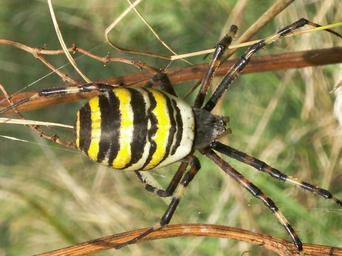 Keywords: Křižák pruhovaný.JPG cs samička křižáka pruhovaného Argiope bruennichi Staré vinice obec Havraníky okres Znojmo own BíláVrána Argiope bruennichi Havraníky