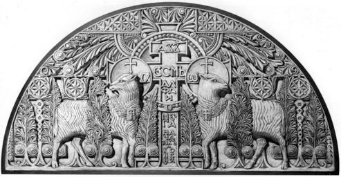 Keywords: Kronstadt cathedral detail (1).jpg Original draft artwork for the entrance portal of the Naval Cathedral in Kronstadt by Vasily and Georgy Kosyakov Inscription I am alpha and omega begining and end - Revelation 1 8 П оект о ского собо а в К онштадте - ба ельеф над входным по талом Василий и Гео гий Косяковы Savelyev Yu R Vizantiysky stil v architecture Rossii Савельев Ю Р Византийский стиль в а хитекту е России - СПБ 2005 Saint Petersburg 2005 ISBN 5-87411-207-6 Published 1903 Vasily Kosyakov - lead architect 1862-1921 Georgy Kosyakov - interiors draftsmanship 1872-1925 PD Photo of actual stone bas relief Russian wikipedia ru File Lepnina_morskoi_sobor JPG PD-old-70 Kronstadt Naval Cathedral Reliefs of the Agnus Dei Alpha Omega |