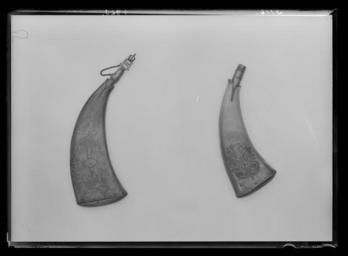 Keywords: Kruthorn - Livrustkammaren - 51834.tif Kruthorn av flatpressat oxhorn välvd spetsoval botten av trä fäst med två trästift Ristad dekor på ena sidan Karl XII s namnchiffer spegelmonogram CXII krönt av kunglig krona mellan krona och chiffer VIVAT R S chiffret hålls av två lejon ytterst bladrankor På motsatt sida en kvinna i lång klänning med ett hjärta i ena handen i den andra en skylt med text VENUS Vänd mot henne en antikiserande krigare på skölden text MARS mellan hans ben ristat XCII Mellan de två liksom på andra sidan om kvinnan ett långt träd Ristad text ovanför trädet O Mars du strebst // Nach HohenEhren // und bist sehr _ // Fuehr und fuehr // Die weil ich Dich nicht Kan Betöthten // So FahreHinn // Du wildes Tiehr // mars ist Mein Nahm // von Taht ein Helt // Meine Wohnung ist // imweitten Felt // Drum Kanst Du Venus // von mir Bleiben // Im Krig Kan ich // Die Zeit ver treiben <br/><br/>Vid mynningen skuret som två käkar med munöppning ristade ögon I munnen en silverskodd pip Propp av silver med fingergrepp i form av namnchiffer spegelmonogram CXII krönt av krona med åtta spiralvridna byglar Proppen fäst med silverkedja vid pipen original caption kruthorn - LRK 3075-3076 ca 1700 horn - silver size mm 230 ca size mm 90 size mm 24 g 137 LRK Karl XII och Peter den store 1998-1999 MARS Mars grek Ares O Mars du strebst Nach Hohen Ehren und bist sehr VENUS Venus Afrodite place of origin DE original filename LN_B01836_004716 39676 inventory number LRK 3075 51834 CC0 Kruthorn - Livrustkammaren - 51834-negative tif Powder horns Media contributed by LSH dim-with multiple size templates Media contributed by LSH unmatched objKeyword Media contributed by LSH 2013-10
