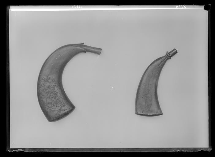 Keywords: Kruthorn - Livrustkammaren - 60395.tif Böjt kruthorn av pressat horn på ena sidan ristad dekor i form av en jägare med bössa stödd mot marken på den andra sidan en naken kvinna som skyler sig med ett linne <br/><br/>Pip med skoning av mässingsbleck Oval botten av trä original caption kruthorn - LRK 3007 3072 brass - wood - horn g 124 size mm 190 78 29 LRK place of origin original filename LN_B01837_004717 39608 inventory number LRK 3007 60395 CC0 Kruthorn - Livrustkammaren - 60395-negative tif Powder horns Media contributed by LSH unmatched objKeyword Media contributed by LSH 2013-10