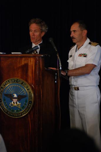 | Keywords: KSM Counsel Press Conference DVIDS103772.jpg en David Nevin a civilian adviser for alleged Sept 11 mastermind Khalid Sheikh Mohammed and Navy Capt Prescott Prince standby defense counsel for Mohammed address media in McCalla Hangar following a hearing here July 10 2008 Mohammed who has elected to represent himself during the proceedings and three other alleged co-conspirators received individual hearings to make counsel elections following accusations of intimidation during a June 5 2008 arraignment JTF Guantanamo conducts safe and humane care and custody of detained enemy combatants The JTF conducts interrogation operations to collect strategic intelligence in support of the Global War on Terror and supports law enforcement and war crimes investigations JTF Guantanamo is committed to the safety and security of American service members and civilians working inside its detention facilities 2008-07-10 Petty Officer 2nd Class Nathaniel Moger https //www dvidshub net/image/103772 080710-N-+++++-018 2008-07-17 15 58 GUANTANAMO BAY CU PD-USGov-Military-Navy Guantanamo Bay Images from DoD uploaded by Fæ |