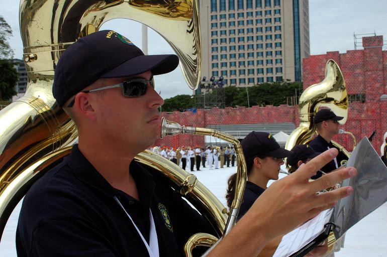 | Keywords: Kuala Lumpur Tattoo DVIDS60208.jpg en Chief Petty Officer 1st Class and musician Brian Chaplow and other members of the Navy's Pacific Fleet Band rehearse for their performance in the Kuala Lumpur International Tattoo 2007 The event occured Sept 6-8 and celebrated the 50th anniversary of Malaysia's independence and featured military bands from the United States Brunei France India Jordan the Republic of Korea the Republic of the Philippines the Republic of Singapore the Kingdom of Thailand the Islamic Republic of Pakistan and the United Kingdom and a Maori cultural group from New Zealand 2007-09-02 Michael Tuck https //www dvidshub net/image/60208 070902-N-+++++-002 2007-10-03 08 55 KUALA LUMPUR MY PD-USGov-Military-Navy Pacific Fleet Band Images from DoD uploaded by Fæ |