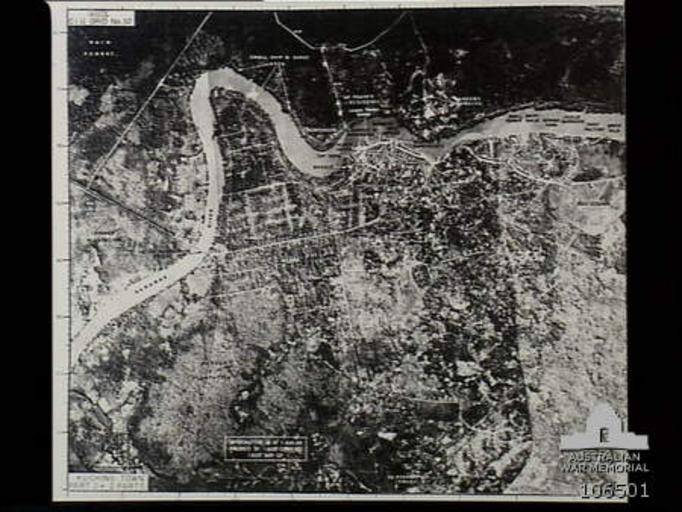 Keywords: Kuching Town (AWM 106501).jpg en Kuching Sarawak Borneo 1945-08-01 Aerial reconnaissance photograph of Kuching Town joins photograph 106500 106501 Wonnacott W A H 1945-08-01 PD-Australia Uncategorized 2015 February 21