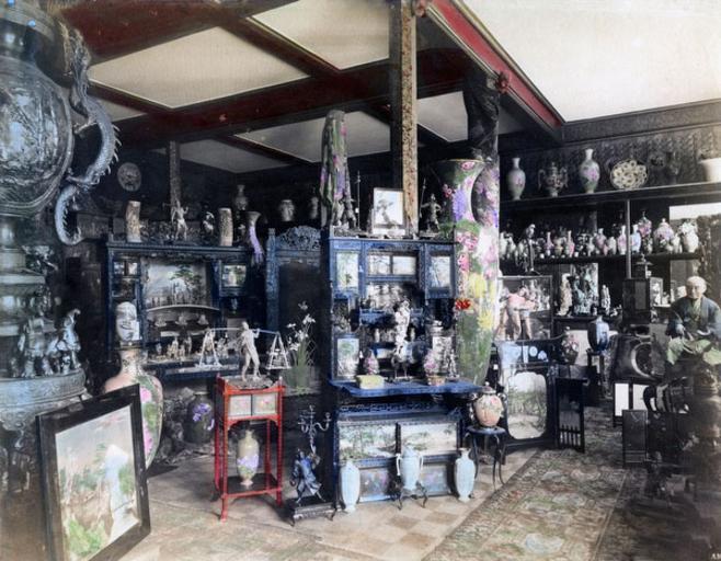 | Keywords: Kuhn & Komor Yokohama.jpg Interior of the famed fine art and curio business Kuhn Komor on 37 Water Street æ°´ç”ºé šã‚Š opposite the Grand Hotel in Yokohama Kanagawa Prefecture Its predecessor was Kuhn Co located at 79 Main Street also in Yokohama between 1869 Meiji 2 and 1897 Meiji 30 http //www meijishowa com/photography/3974/80303-0039-pp-kuhn-komor-shop before 1919 unknown Kuhn Komor Naka-ku Yokohama pd-old | ||||