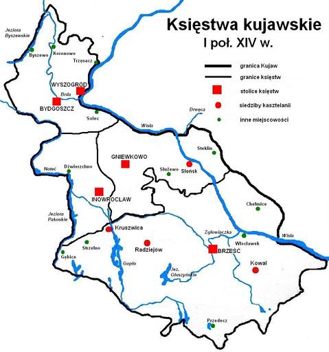 | Keywords: Kujawy księstwa dzielnicowe XIV w.jpg pl Kujawy - podział na księstwa w I połowie XIV wieku Opracowano na podstawie Guldon Zenon Podziały administracyjne Kujaw i ziemi dobrzyńskiej w XIII-XIV wieku Warszawa Poznań Państwowe Wydawnictwo Naukowe 1974 own Pit1233 2011-09 Kujawy Cc-zero |