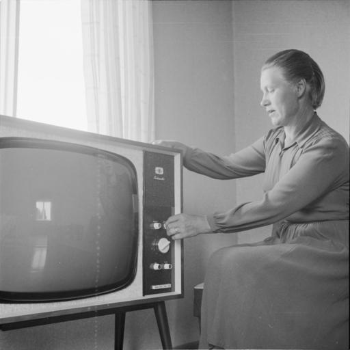 | Keywords: blackandwhite monochrome indoor black and white Smallholder Lempi Kuikka with a TV-set she won from a competition organized by Kuluttaja magazine. There is no picture on the screen, as the Kuikkas' house didn't have electricity. Original caption: "Lempi Kuikka trying out the buttons of the magnificent PYE television, although there is no picture to see." (Kuluttaja 33/1963, p. 13) / Kuluttaja-lehden kolmannen Tule ja voita -kilpailun voittaja Lempi Kuikka tutustuu palkintona saamaansa televisioon. Kuikkien talossa ei vielä ollut sähköjä, joten kuvaa vastaanottimeen ei saatu. Alkuperäinen kuvateksti:"Emäntä Lempi Kuikka näppäilee kokeeksi voittamansa upean PYE-television koskettimia, vaikka kuva ei ruutuun vielä tulekaan." (Kuluttaja 33/1963, s. 13) photographer unknown / kuvaaja tuntematon 1963 Kaavi, Pohjois-Savo, Finland Finnish Museum of Photography / Suomen valokuvataiteen museo Smallholder Lempi Kuikka with a TV-set she won from a competition organized by Kuluttaja magazine. There is no picture on the screen, as the Kuikkas' house didn't have electricity. Original caption: "Lempi Kuikka trying out the buttons of the magnificent PYE television, although there is no picture to see." (Kuluttaja 33/1963, p. 13) / Kuluttaja-lehden kolmannen Tule ja voita -kilpailun voittaja Lempi Kuikka tutustuu palkintona saamaansa televisioon. Kuikkien talossa ei vielä ollut sähköjä, joten kuvaa vastaanottimeen ei saatu. Alkuperäinen kuvateksti:"Emäntä Lempi Kuikka näppäilee kokeeksi voittamansa upean PYE-television koskettimia, vaikka kuva ei ruutuun vielä tulekaan." (Kuluttaja 33/1963, s. 13) photographer unknown / kuvaaja tuntematon 1963 Kaavi, Pohjois-Savo, Finland Finnish Museum of Photography / Suomen valokuvataiteen museo |