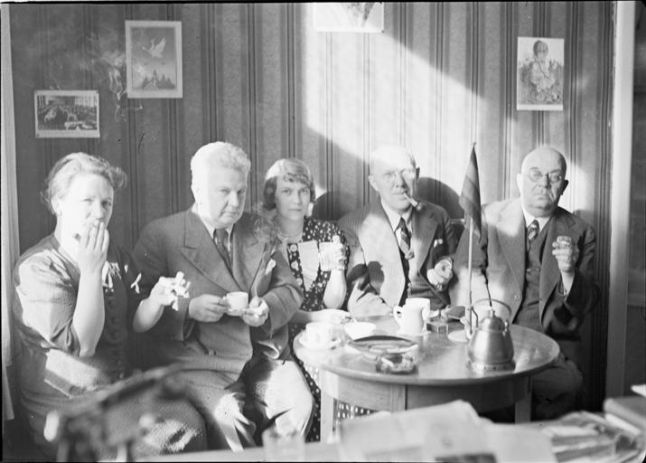 | Keywords: blackandwhite monochrome black and white The editorial staff of Kuluttajain Lehti. From the left: two unknown persons, Karoliina Otava, Jussi Raitio and Eero Heinivaara. / Kuluttajain Lehden toimitus Liisan kahvilla. Vasemmalta: kaksi tuntematonta henkilöä, Karoliina Otava, Jussi Raitio ja Eino Heinivaara. photographer unknown / kuvaaja tuntematon 1940's / 1940-luku Helsinki, Uusimaa, Finland Finnish Museum of Photography / Suomen valokuvataiteen museo The editorial staff of Kuluttajain Lehti. From the left: two unknown persons, Karoliina Otava, Jussi Raitio and Eero Heinivaara. / Kuluttajain Lehden toimitus Liisan kahvilla. Vasemmalta: kaksi tuntematonta henkilöä, Karoliina Otava, Jussi Raitio ja Eino Heinivaara. photographer unknown / kuvaaja tuntematon 1940's / 1940-luku Helsinki, Uusimaa, Finland Finnish Museum of Photography / Suomen valokuvataiteen museo |