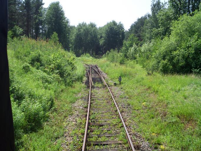 | Keywords: Kunowice route386 switch.JPG rail route to Cybinka direction left a start of a business track to a former airport direction right outside a train station in Kunowice Poland as seen from the back of a tourist train 2012-06-30 own Jan Pešula cc-zero Uploaded with UploadWizard Kunowice train station |