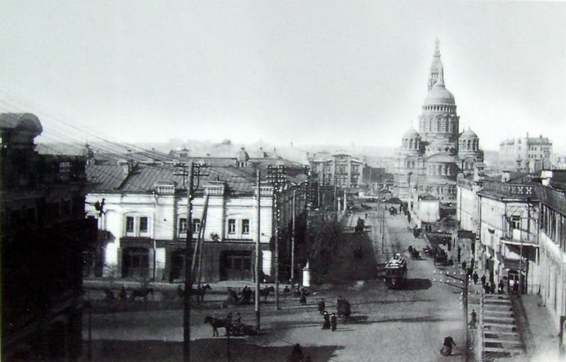 Keywords: Kupechesky spusk and Blagovecshensky Sobor.jpg View from Kupechesky Spusk towards Kupechesky Bridge Blagoveshchenskaya Square and Annunciation Cathedral ru Вид с Купеческого спуска в сто ону Купеческого моста Благовещенской площади и Благовещенского собо а A photo of early 20th century in Ха ьков Рет оальбом Х 2008 // фотог афия начала XX века из Ха ьков Рет оальбом Х 2008 1910-1917\Early 20th century Unknown; не указан PD-old PD-RusEmpire Trams in Kharkiv Blagoveschensky Cathedral in Kharkiv Sobornyi Descent Kupechesky Bridge