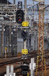 Keywords: Kuroiso station signal.JPG ja 黒磯駅構内の下り線に設置されている出発信号機 信号機の ールの中間に設置されているのは架線の電源が交流か直流を表示する架線電源識別標識 投稿 が撮影 toshinori baba 2011-01-07 Cc-zero Kuroiso Station