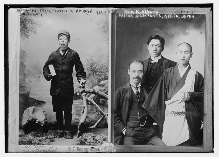 | Keywords: Kusakabe Kimbei - Two Portraits.jpg en Watanabe Gikai Colporteur of American Bible Society left ; Rev K Kimura the Pastor and Converts of Kyoto Japan right http //lcweb2 loc gov/service/pnp/ggbain/04000/04016v jpg Creator Kusakabe Kimbei PD-Art Kusakabe Kimbei Bible societies |