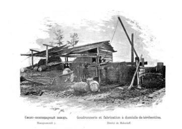 Keywords: Kustari 081 Smolo-skipidarny zsavod.jpg en Handicraft Industry and Trades of Nizhegorodskaja gubernija Makariev XIX c ru Куста ные п омыслы и емёсла ижего одской губе нии Смоло-скипида ный завод ака ьевский уезд 1896 год Скани ован из книги ижего одская губе ния по исследованиям губе нского земства Выпуск II Куста ные п омыслы ижего одской губе нии / сост А Плотников СПб 1896 еизвестный фотог аф конца XIX века 1896 PD-old Handicraft Industry of Nizhny Novgorod province