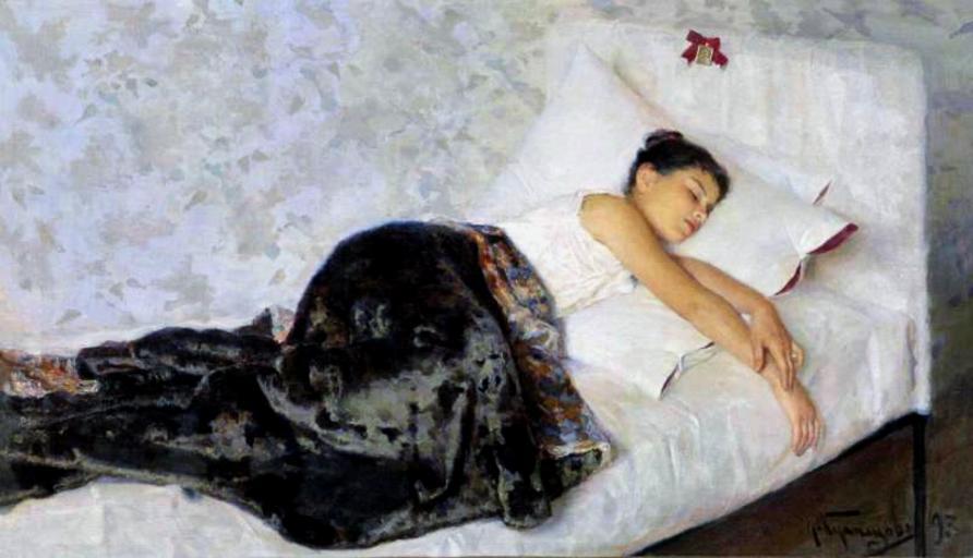 Keywords: Kuznetsov 008.jpg Artwork Creator Nikolay Kuznetsov en Sleeping girl 1893 oil canvas cm 62 0 107 0 en The Rybinsk State History Architecture and Art Museum-Preserve ru Рыбинский госуда ственный исто ико-а хитекту ный и художественный музей-заповедник object history credit line accession number РБ -2621 Ж-204 http //www rybmuseum ru/query/SPage page 3 author CA F3 E7 ED E5 F6 EE E2 paicode 00000315 rc 33 PD-old-70 Paintings by Nikolai Dmitrievich Kuznetsov Sleeping in art Paintings in Rybinsk Museum-Preserve |