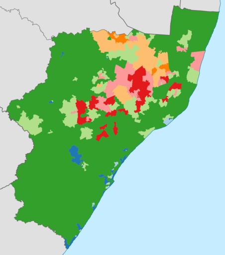 | Keywords: KwaZulu-Natal provincial election 2014 winner by ward.svg KwaZulu-Natal the party taking the largest number of votes in the 2014 provincial legislature election A lighter shade indicates a non-majority plurality legend 33a02c African National Congress majority b2df8a African National Congress plurality 1f78b4 Democratic Alliance majority a6cee9 Democratic Alliance plurality e31a1c Inkatha Freedom Party majority fb9a99 Inkatha Freedom Party plurality ff7f00 National Freedom Party majority fdbf6f National Freedom Party plurality own Htonl 2014-05-17 2014 South African general election maps Maps of KwaZulu-Natal Maps by Htonl Cc-zero |