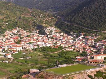 Keywords: kyriaki greece town village buildings mountains valley ravine road highway field vista nature outside
