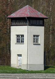 | Keywords: KZ-Gedenkstätte Dachau, Wachturm an der Westmauer, 3.jpeg de Wachturm an der Westmauer des ehemaligen KZ Dachau eo Gardoturo ĉe la okcidenta muro de la eksa koncentrejo Dachau DE self-photographed Renardo la vulpo 2016-04-11 48 16 8 N 11 28 8 E heading NW Dachau concentration camp watchtowers Cc-zero |