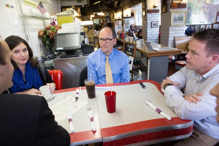 Keywords: L-14-10-22-B.143 (15603525802).jpg 22 October 2014 - Secretary of Labor Thomas Perez meets and has lunch with Paid Leave letter writers Daniel McCleese Prince William County Firefighter and Kate Davenport; a social worker in Maryland Dan's wife Laura McCleese and Kate's husband Chris Davenport also joined them for the lunch at the Florida Ave Grill Official Department of Labor Photograph This official Department of Labor photograph is being made available only for publication by news organizations and/or for personal use printing by the subject s of the photograph The photograph may not be manipulated in any way and may not be used in commercial or political materials advertisements emails products and/or promotions that in any way suggest approval or endorsement of the Secretary or the Department of Labor Photo Credit Department of Labor https //www flickr com/photos/usdol/15603525802/ L-14-10-22-B 143 2014-10-22 11 44 https //www flickr com/people/52862363 N07 US Department of Labor PD-USGov US Department of Labor https //flickr com/photos/52862363 N07/15603525802 2016-09-06 05 53 35 United States Government Work Uncategorized 2016 December 21 |