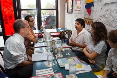 | Keywords: L-15-10-09-A.199 (21519959063).jpg  09 October 2015 “ Washington DC “ Secretary of Labor Thomas Perez travels to New York City to meet with workers who are nannies and car washers to following up on the conversation started at the White House Summit on Worker Voice Secretary Perez sits with Patricio Santiago far right and Josue Gomez far left both car washers to discuss their needs and the needs of the other car washers working in the industry Official Department of Labor Photograph Photographs taken by the federal government are generally part of the public domain and may be used copied and distributed without permission Unless otherwise noted photos posted here may be used without the prior permission of the U S Department of Labor Such materials however may not be used in a manner that imply any official affiliation with or endorsement of your company website or publication https //www flickr com/photos/usdol/21519959063/ L-15-10-09-A 199 2015-10-09 13 25 https //www flickr com/people/52862363 N07 US Department of Labor PD-USGov US Department of Labor https //flickr com/photos/52862363 N07/21519959063 2016-09-06 04 35 26 United States Government Work Uncategorized 2016 December 21  |