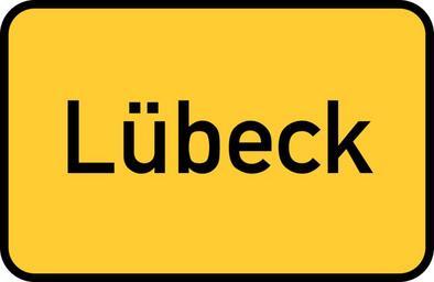 Keywords: lübeck hanseatic schleswig-holstein sleswick-holsatia hanse town sign city limits sign entry sign gateway sign traffic road sign street sign directory yellow germany direction unesco world heritage site
