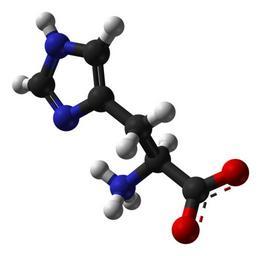 | Keywords: L-histidine-zwitterion-from-xtal-1993-3D-balls-B.png Ball-and-stick model of the <small>L</small>-histidine zwitterion as found in the solid state X-ray diffraction data from Z Krist 1993 207 111 Model constructed in http //www crystalmaker com/ CrystalMaker 8 1 Image generated in http //accelrys com/products/discovery-studio/visualization/discovery-studio-visualizer html Accelrys DS Visualizer Own 2009-05-01 Ben Mills Benjah-bmm27 Images by Ben Mills L-histidine Ball-and-stick models | ||||