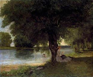 | Keywords: La Charente à Port-Berteau (Gustave Courbet).jpg fr La Charente à Port-Berteau huile sur toile 54×62 cm peinte en 1862 par Gustave Courbet et exposée pour la première fois en 1863 à Saintes Ce tableau représente une femme assise au pied d'un arbre tout proche du fleuve Charente au lieu-dit Port-Berteau commune de Bussac-sur-Charente France à l'heure actuelle ce tableau se trouve au musée Fitzwilliam de Cambridge Royaume-Uni en The Charente at Port-Berteau oil on canvas 54×62 cm painted in 1862 by Gustave Courbet and exposed for the first time in Saintes in 1863 This painting shows a woman sitting next to a tree nearby the river Charente ina place named Port-Berteau Bussac-sur-Charente France This painting is currently located in the Fitzwilliam Museum of Cambridge United Kingdom 1862 http //gallart by/Gustave_Courbet html Creator Gustave Courbet other versions PD-Art Uploaded with UploadWizard Landscapes by Gustave Courbet Bussac-sur-Charente Collections of the Fitzwilliam Museum 1862 paintings from France |