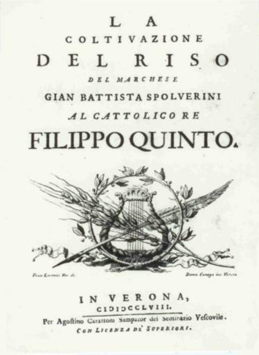 | Keywords: La coltivazione del riso - Spolverini.jpg Giambattista Spolverini sul ciclo del riso Verona 1758 Italia Verona in 1758 - Italy 2013-06-09 09 35 28 http //www risocarenzio it/conoscere/storia html Azienda agricola Carenzio Giovanni Spolverini Custom license marker 2013 06 09 PD-old-100 Uploaded with UploadWizard Rice books Title pages Rice of Italy |