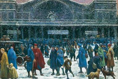 Keywords: 'La Gare de l'Est Sous La Neige' (The East Railway Station under the snow, 1917) by Maximilien Luce..jpg La Gare de l'Est Sous La Neige The East Railway Station under the snow Giverny Museum of Impressionism creator Maximilien Luce 1917 Maximilien Luce Historical images of Gare de Paris-Est 1917 1917 in Paris Urban life paintings of Paris Paintings of buildings in Paris Winter in Paris Paintings of people with snow Train stations in art Fondation Claude Monet PD-old-auto 1941 |