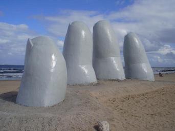 Keywords: La mano de Punta del Este.JPG es Escultura Hombre emergiendo a la vida o Monumento al ahogado también conocida como La mano en Punta del Este Uruguay own María Cecilia Piderit B 2013-03-03 Los Dedos Punta del Este Cc-zero