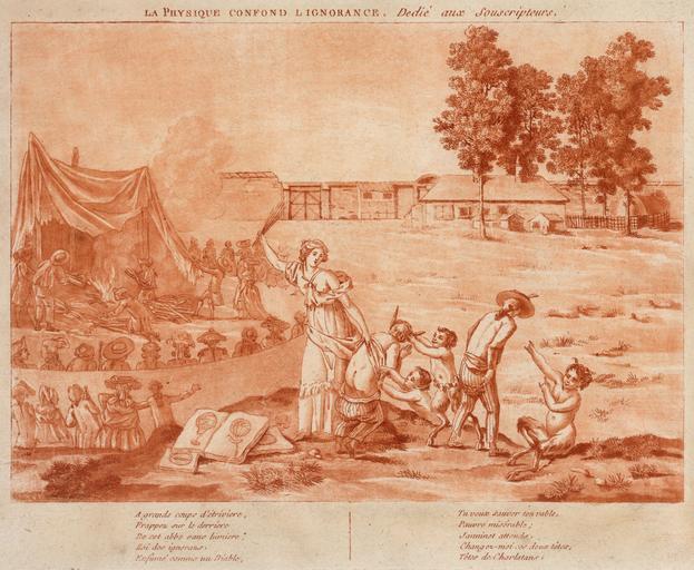 | Keywords: La physique confond l'ignorance Dedié aux souscripteurs 2.jpg Artwork French cartoon shows a woman Physics personified whipping the bare bottom of one man possibly Janinet while another possibly Abbé Miollan walks away pulling up his trousers In the background men are inflating a balloon with hot air from a fire which apparently caused the balloon to ignite and enraged spectators who had paid admission to witness the ascent and who hastened the destruction of the balloon by fanning the flames and pulling it to pieces The print appears to ridicule the attempt of Abbé Miollan and Janinet to ascend in a hot air balloon in Paris France Published France s n 1784 1 print etching with aquatint Institution LoC object history exhibition history credit line accession number LOC-image ppmsca 02331 PD-100 Images of Paris from the Library of Congress Hot air balloons in Paris Aircraft of the 18th century Balloon aircraft in art 1784 in Paris |