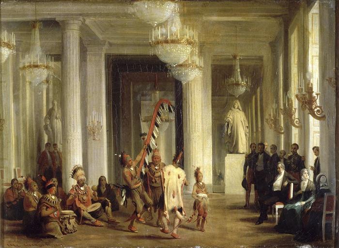 MAKE A MEME View Large Image George Catlin - Karl Girardet.jpg Artwork fr Le roi Louis-Philippe assistant dans un salon des Tuileries a la danse d'Indiens Iowa 21 avril 1845 en King Louis-Philippe watches a dance by Iowa Indians in a salon of the Tuileries 21 April ...