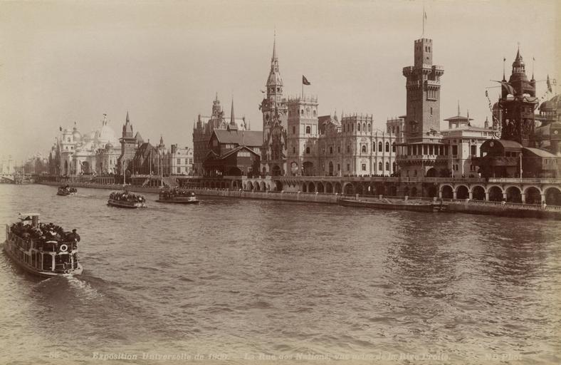 Keywords: La Rue des nations, vue prise de la rive droite, Exposition Universelle 1900.jpg Foreign pavilions at the 1900 Paris World Fair The Rue des nations Foreign Nations street was located on the left bank of the Seine river between the Eiffel Tower and the Esplanade des Invalides It housed most of the foreign pavilions at the Fair some were also located in the Trocadéro gardens on the other side of the river and in front of the Eiffel Tower The buildings on that image are from right to left the Swedish pavilion the Monegasque pavilion the Spanish pavilion the German pavilion the Norvegian pavilion the Belgian pavilion the British pavilion the Hungarian pavilion the Austrian pavilion the American pavilion the Ottoman pavilion and the Italian pavilion 1900 photograph 12 x 18 5 cm Institution Brown University Library object history exhibition history credit line Published in N D Exposition universelle de 1900 album of 50 fine photographic views Paris 1900 accession number 1303846826250001 PD-old National pavilions of the Exposition Universelle 1900 Images of Paris from the Brown University Library Exposition universelle de 1900 album of 50 fine photographic views |