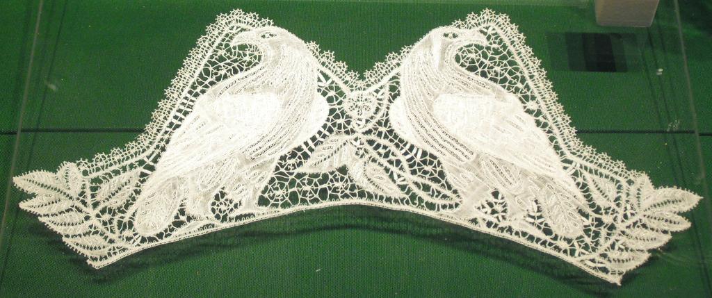 Keywords: LaceCuffHiggins.JPG en A cuff with a design of two eagles made of Bedfordshire Maltese lace between 1860 and 1880 and on display in The Higgins museum and gallery in Bedford own Simon Speed 2016-03-09 19th-century lace Lace clothing Eagles in art The Higgins Bedford Photos by Simon Speed Taken with Fujifilm FinePix J25 1860s fashion 1870s fashion Cuffs Cc-zero |