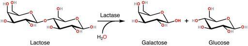 Keywords: Lactase.png en Chemical reaction catalyzed by the lactase enzyme own Boghog2 File lactose hydrolysis svg Hydrolases reactions Lactase EC 3 2 1