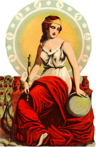 Keywords: lady woman goddess 1920 vintage girl beauty people female red queen myth roman mythology juno matron crown symbol old