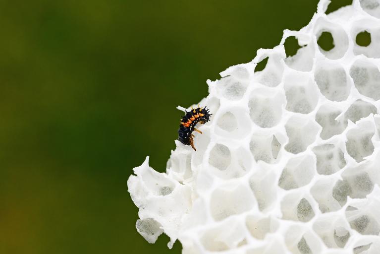 Keywords: ladybird larvae wax comb harlequin ladybird larvae young ladybird nature wild close-up detail