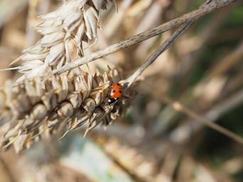 Keywords: ladybug beetle siebenpunkt coccinella septempunctata coccinella animal insect red spotted pest exterminator pest control wheat spike cereals grain field wheat field cornfield plant eat food arable agriculture agricultural cultivation nature triticum aestivum corn ear ear of corn halm ripe land rural golden season straw summer yellow harvest triticum poaceae grass