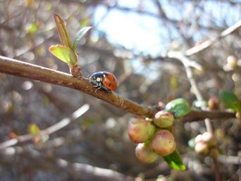 Keywords: ladybug spring japanese quince rügyezés