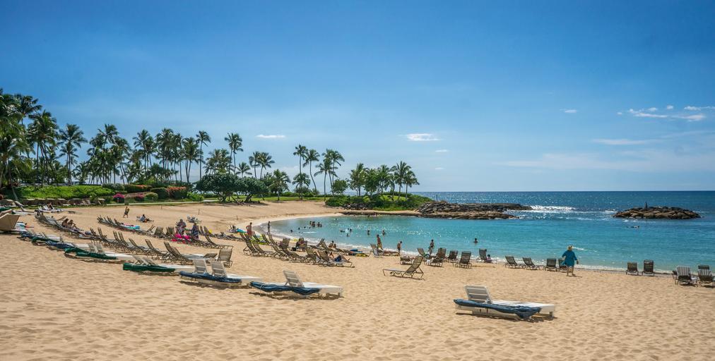 Keywords: lagoon ko olina hawaii oahu ocean clouds coast landscape sea tropical palm resort water blue coastline colorful people vacation summer nature sky beach outdoor seascape scene sand sunny turquoise scenic