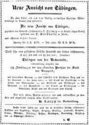 Keywords: LAHelwig-Annonce zum Sammelbild.jpg de Annonce zu Ludwig August Helwigs Sammelbild von Tübingen erschienen im Tübinger und Rottenburger Intelligenzblatt 1845-02-01 eingescannt aus Christina Melk Tübinger Ansichten und Maler im 19 Jahrhundert Tübingen 1986 Tübinger Kataloge Nr 27 Städtische Sammlungen Tübingen Ludwig August Helwig 1796-1855 Custom license marker 2012 04 15 PD-old Uploaded with UploadWizard Ludwig August Helwig |
