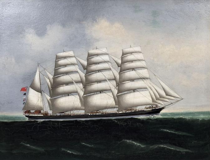| Keywords: Lai Fong of Calcutta - Ship portrait, „Trade Winds“ in full sail.jpg Lai Fong Lai Fong of Calcutta fl 1870-1910 The barque was launched in the mid 19th Century and originally named šOphia ˜ the name was changed to šTrade Winds ˜ when Captain Pierre Blampied Le Patourel 1878-1953 became Master in the late 19th Century The barque held the coveted Blue Ribbon for the tea trip back from Calcutta to London other date late other date century 19 possibly early other date century 20 oil canvas in 18 24 object history credit line The Captain Pierre Blampied Le Patourel was a tenth child of Peter Grenager Lepatouer and Betsy Adelaide Blampied - Shipwrights of St Martins Guernsey Channel Islands and it is thought that he commisioned the picture from Lai Fong in Calcutta accession number http //www thecanterburyauctiongalleries com/lot/lai-fong-0 Canterbury Auction - 2013 02 12 Lot 803 PD-Art-100 Lai Fong 19th-century sailing ships in paintings Four-masted ships Barques Paintings from China |