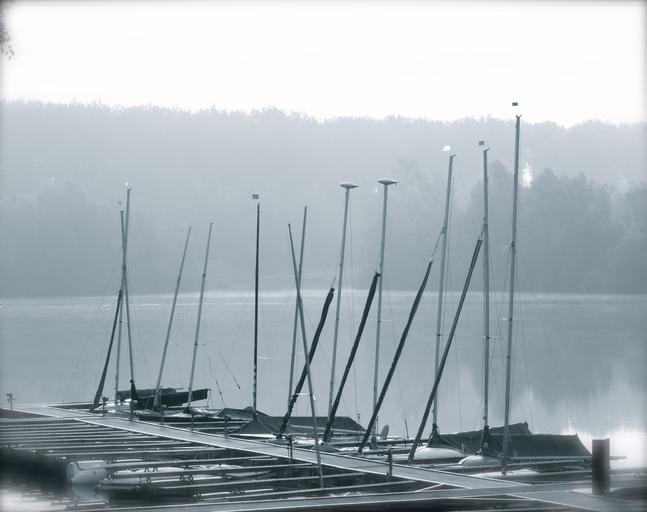 Keywords: lake anchorage autumn fog crap boats sea bridge loneliness forest
