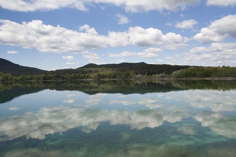 Keywords: lake banyoles girona catalunya nature clouds water landscape reflection mirror bright