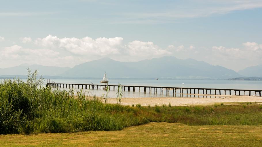 Keywords: lake chiemsee landscape mountains water sky ship distant nature boot vision view chiemgau upper bavaria investors web jetty mood holiday leisure recovery romance romantic